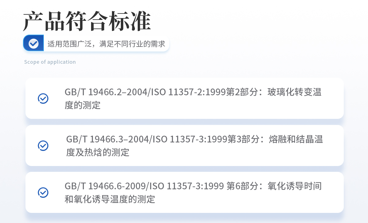 GB/T 19466.2–2004/ISO 11357-2:1999第2部分:玻璃化轉(zhuǎn)變溫度的測(cè)定 GB/T 19466.3–2004/ISO 11357-3:1999第3部分:熔融和結(jié)晶溫度及熱焓的測(cè)定 GB/T 19466.6-2009/ISO 11357-3:1999 第6部分:氧化誘導(dǎo)時(shí)間和氧化誘導(dǎo)溫度的測(cè)定