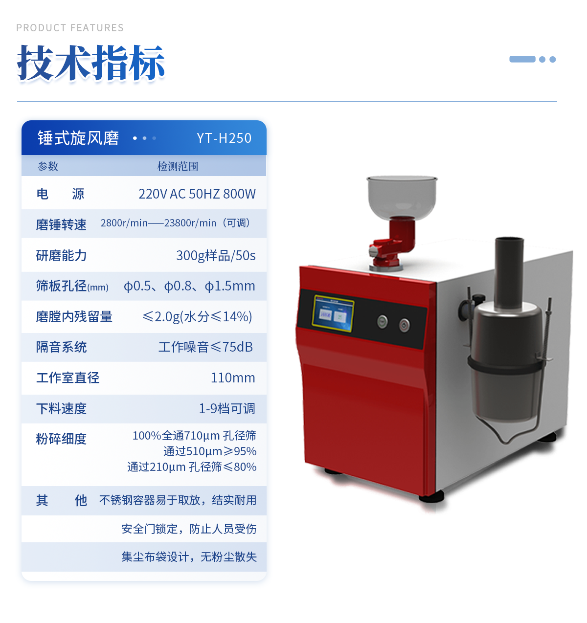 YT-H250錘式旋風磨是本公司根據市場需求獨立研究開發的設備,具有粉碎溫度低、噪音小等特點。