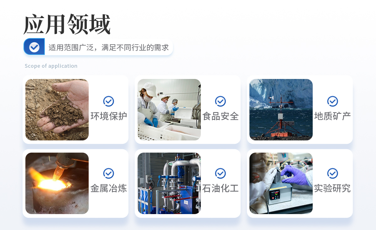 全譜直讀型電感耦合等離子體發射光譜儀 ,是目前無機元素分析的主流產品,它具有光譜干擾小,穩定性好、分析快速等優點,是無機元素分析領域常用的手段。可廣泛應用于環境保護、食品安全、地質礦產、冶金、有色金屬、稀土、化工、臨床醫藥、石油制品、半導體、農業研究等各個領域。用于測定不同物質中的常量、微量、痕量元素含量,可用于樣品中元素的定性、半定量及**定量分析,檢出限可達十億分之一級。