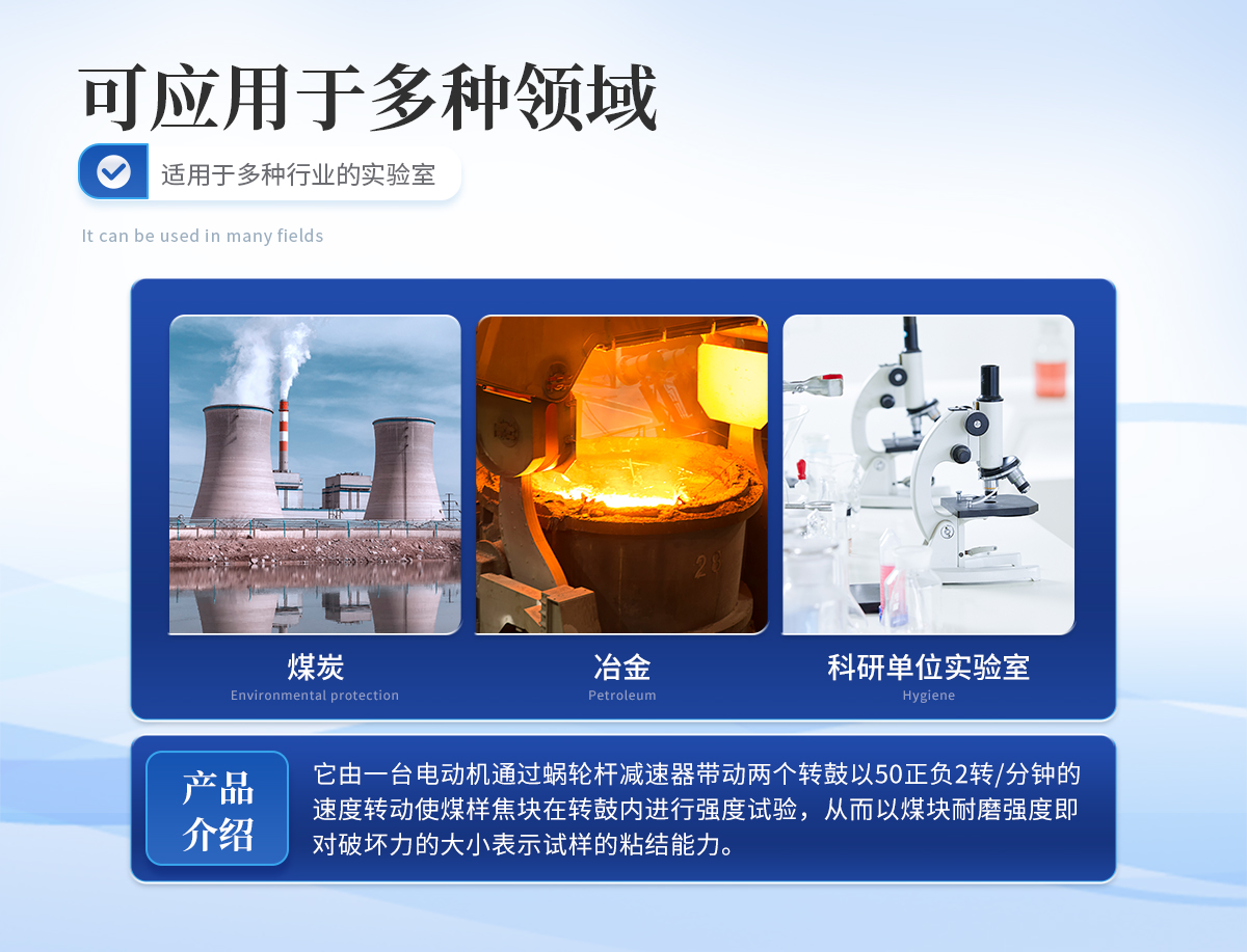 該儀器是測定煉焦用煤的粘結(jié)能力——羅加指數(shù)及粘結(jié)指數(shù)的專用儀器。適用于煤炭,冶金焦化部門及科研單位的實驗室專用。它由一臺電動機通過蝸輪桿減速器帶動兩個轉(zhuǎn)鼓以50正負(fù)2轉(zhuǎn)/分鐘的速度轉(zhuǎn)動,使煤樣焦塊在轉(zhuǎn)鼓內(nèi)進行強度試驗,從而以煤塊耐磨強度——即對破壞力的大小表示試樣的粘結(jié)能力。