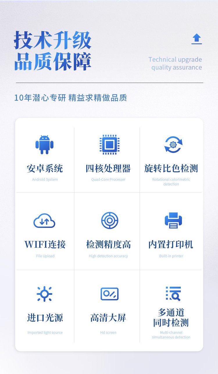 *儀器采用精密旋轉(zhuǎn)比色池設(shè)計(jì),使用光源一致,可以解決各通道間由于光源誤差帶來的檢測結(jié)果誤差問題,檢測結(jié)果更加精準(zhǔn)。