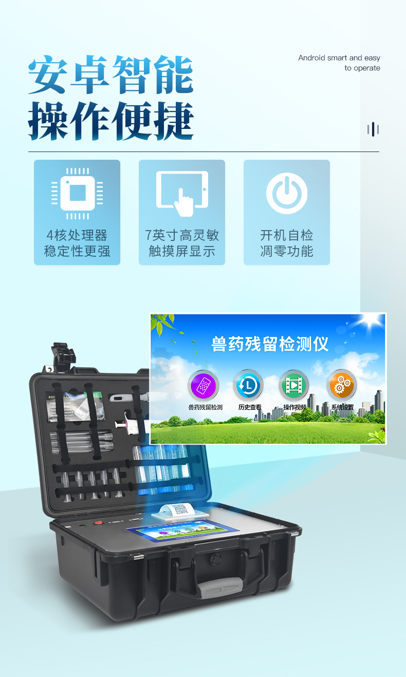 產品用途該獸藥殘留檢測儀適用于豬、雞、鴨、羊、牛、牛奶等畜禽產品中獸藥殘留、有毒有害物質和抗生素殘留的檢測可廣泛應用于食藥監局、衛生部門、高教院校、科研院所、農業部門、畜牧獸醫、養殖場、屠宰場、食品肉產品深加工企業、檢驗檢疫部門等單位使用。