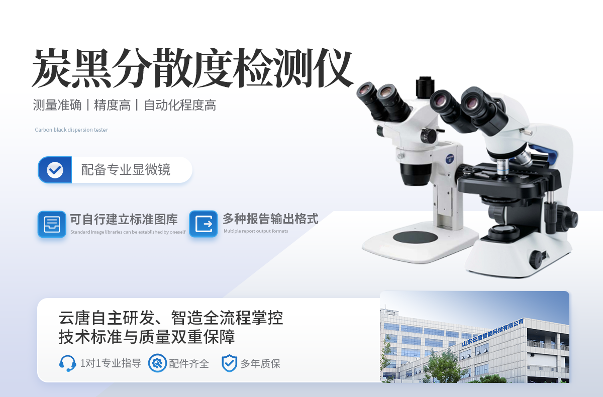 炭黑分散度檢測儀根據國際標準 GB/T 18251-2000針對聚烯烴管材、管件和混配料中顏料或炭黑分散的檢測儀器。該儀器適配基于軟件及相應的顯微鏡,通過對炭黑粒團的尺度、形態、及散布情況的測量,可以建立起這些參數與力學性能、抗靜電性能、吸濕性能等宏觀性能指標的內在聯系。對塑料材料的品質保障、生產工藝、新品研發產生積極影響,同時推進企業和行業技術水平的快速提升。