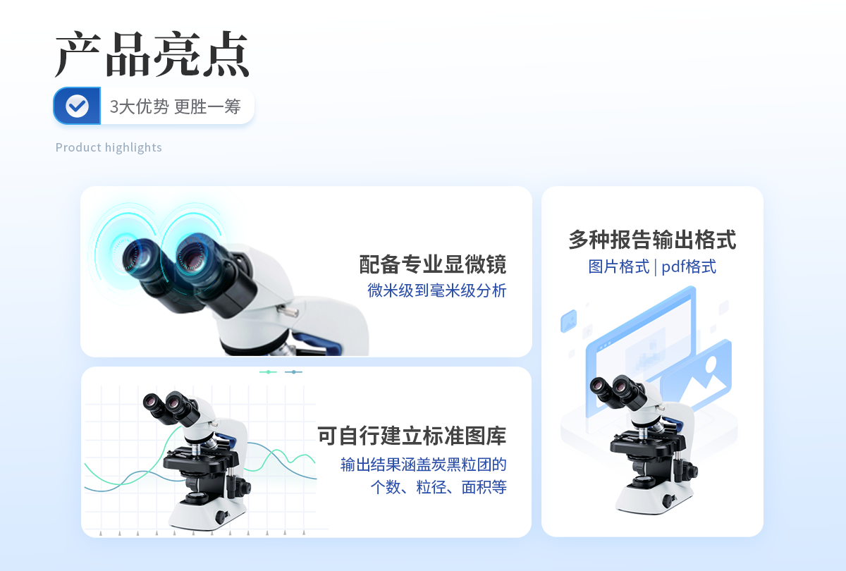 | 1、采用專業圖像分析法由計算機完成炭黑分散度等級的判定,檢測精度高。 | 2、對目標炭黑粒徑可從微米級到毫米級進行分析 | 3、 配備專業顯微鏡,配以500萬CMOS圖像傳輸器 | 4、可單張保存圖像,圖像大小由640*480,1024*768,1280*1024,2592*1944四種大小可供選擇 | 5、豐富的圖像處理功能,滿足多種圖像處理需要 | 6、軟件具有自動和手動兩種方式進行炭黑圖像分割 | 7、軟件可滿足對局部分析的要求 | 8、配備測微標尺,可進行像素點尺寸校準,并且軟件具有移動標尺功能,可進行任意兩點距離測量 | 9、客戶可以自行建立標準圖庫 | 10、輸出結果涵蓋炭黑粒團的個數、粒徑、面積等,并可以數據報表和excel的形式進行輸出 | 11、提供圖像灰階分布圖、粒子徑分布圖、粒度分布圖 | 12、報告結果包括:樣品名、標準名、原始圖像、灰階圖等。報告輸出格式多樣,可以選擇圖片格式或pdf格式進行保存。 | 13、軟件試用各種主流操作系統,與win7/win10/winXP等有很好兼容性。 | 14、采用usb2.0數據接口,可適配多種采集設備(如:攝像頭或數碼相機) |