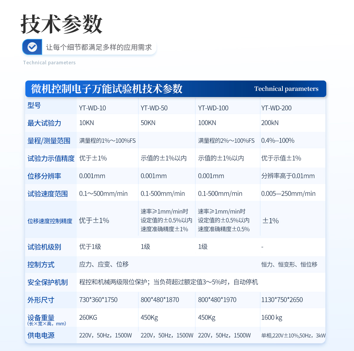 該系列萬能試驗機適用于橡膠、塑料、紡織物、防水材料、電線電纜、網繩、金屬絲、金屬棒、金屬板、各種金屬、非金屬及復合材料的力學性能指標的測試,如各種拉伸試驗,通過更改附具便可輕松完成壓縮、彎曲、剪切、撕裂、剝離、穿刺等試驗。7寸TFT彩色觸摸屏,直接輸入試驗參數,中英文操作界面層層提示,用戶無需操作手冊即可輕松操作。本拉力試驗機具有試驗力數字顯示,試驗速度連續可調,試樣拉斷自動停機,峰值保持等功能,試驗結果完全符合國家相關標準的要求。