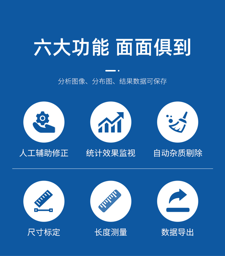 可不等間距地自定義分段直徑,自動測量各直徑段長度、投影面積、表面積、體積 等,及其分布參數;